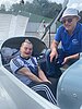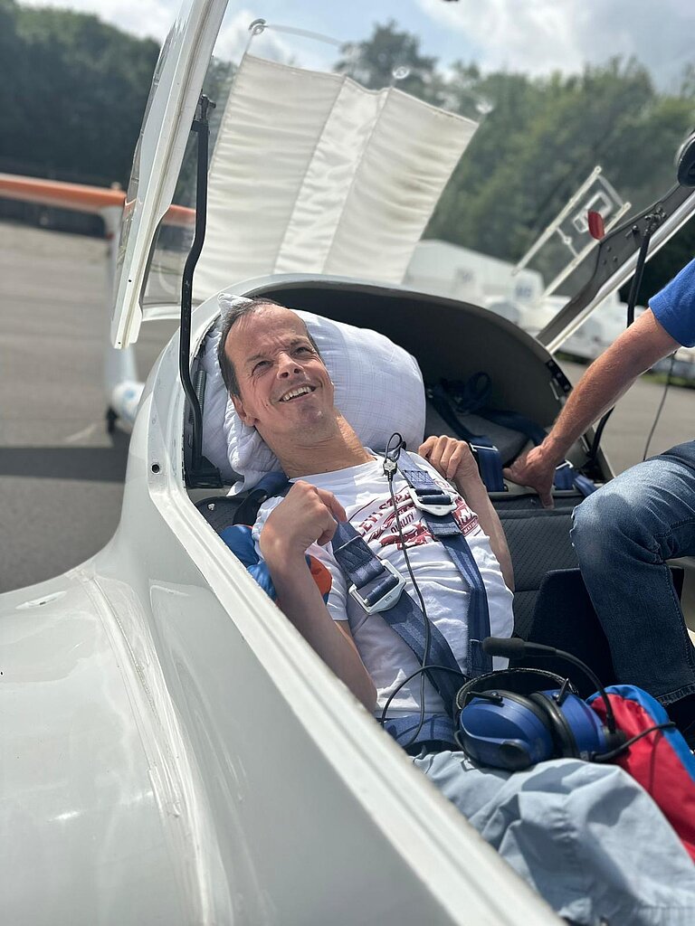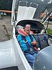 Dann war Monika an der Reihe. Sie stieg über die Rampe ins Flugzeug. Nach ihrer Rückkunft sagte sie nur: „das war wieder geil“. Für Johanna, die schon mehrere Male geflogen ist und bei den Piloten bekannt ist, sagt kurz und bündig „(...) gut war´s wieder“ und will auch nächstes Jahr wieder dabei sein. Zum Schluss flog Martin - anfänglich etwas angespannt, bis er letztlich gut im Flieger mit Lagerungshilfsmitteln positioniert wurde. Nach dem Flug sagte er nur: „sehr gut“. Auch er freute sich wieder festen Boden unter sich zu haben.