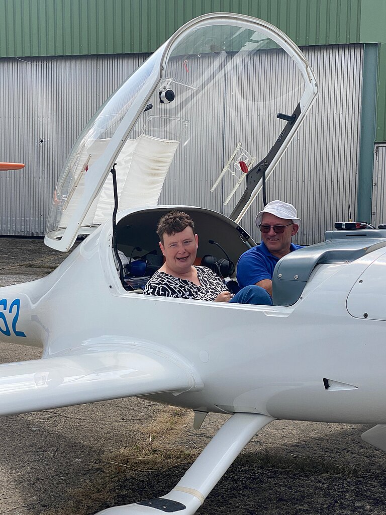 Für Monika, Martin, Johanna, Hildegard und Van Vu war es am 2. August soweit, sich ab Giebelstadt zum Beispiel über Würzburg fliegen zu lassen. Sichtlich freudig und aufgeregt hat Hildegard neben unserem Piloten Christian mit Unterstützung über die Rampe, Platz genommen. Ihr freudiges Lautieren und sicherlich auch etwas Nervosität, spiegelte sich in ihrem Verhalten wieder. Nach ca. 25 Minuten landete sie sicher und deutlich „gechillt“ auf dem Flugplatz.
