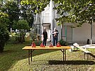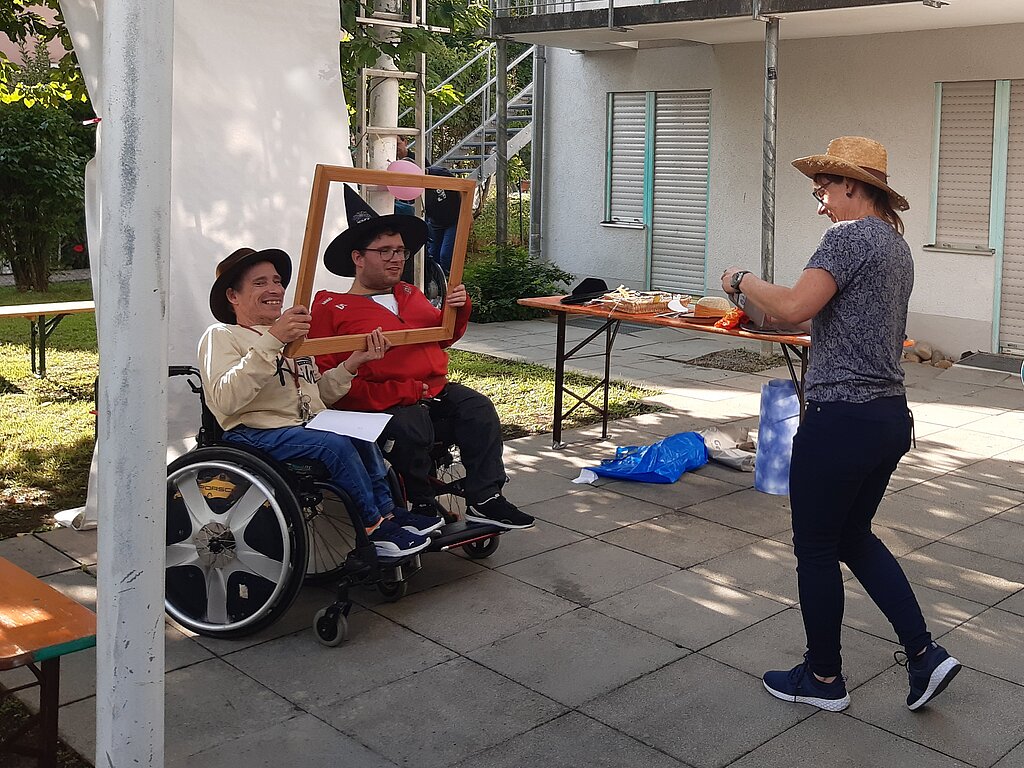 Ein abwechslungsreiches Unterhaltungsprogramm bot Gelegenheit für Spiel, Spaß und Bewegung: Ob beim Dosen spritzen, Boccia oder Ballspielen – Geschicklichkeit und Teamgeist waren gefragt. Ein besonderes Erlebnis war die Fahrt mit dem Tandem, und zur Erinnerung konnte jede und jeder ein lustiges Foto mit nach Hause nehmen. In Fühl-Boxen durfte außerdem der Tastsinn erprobt werden.
