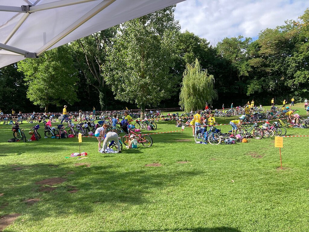 1800(!) Kinder waren dieses Jahr am Start. Was für eine enorme Zahl. Dass da die Logistik, vor allem aber auch die Fahrradtechnik stimmen muss, ist selbstredend und dank des Engagements der SIT-Fahrradwerkstatt (neben anderen Akteuren) hat alles bestens funktioniert. Von früh morgens bis am Nachmittag wurde jedes Rad einem Kurzcheck unterzogen und durfte nur auf die Piste, wenn es den Mindestanforderungen an Sicherheit und Funktionalität entsprach. Auch kleine Reparaturen wurden vor Ort, beim „Boxenstopp“ geleistet und den Reifen viel Luft gespendet.