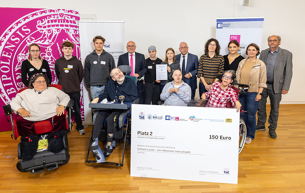 Im Rahmen der Herbsttagung der Professional School of Education der Universität Würzburg und zugleich Schulentwicklungstag 2025 wurde am 30. September der TaC Award 2025 an vier Gymnasien aus Unterfranken verliehen – das P-Seminar „Leichte Sprache“ im Schuljahr 2024/25 hat dabei den 2. Platz erreicht.