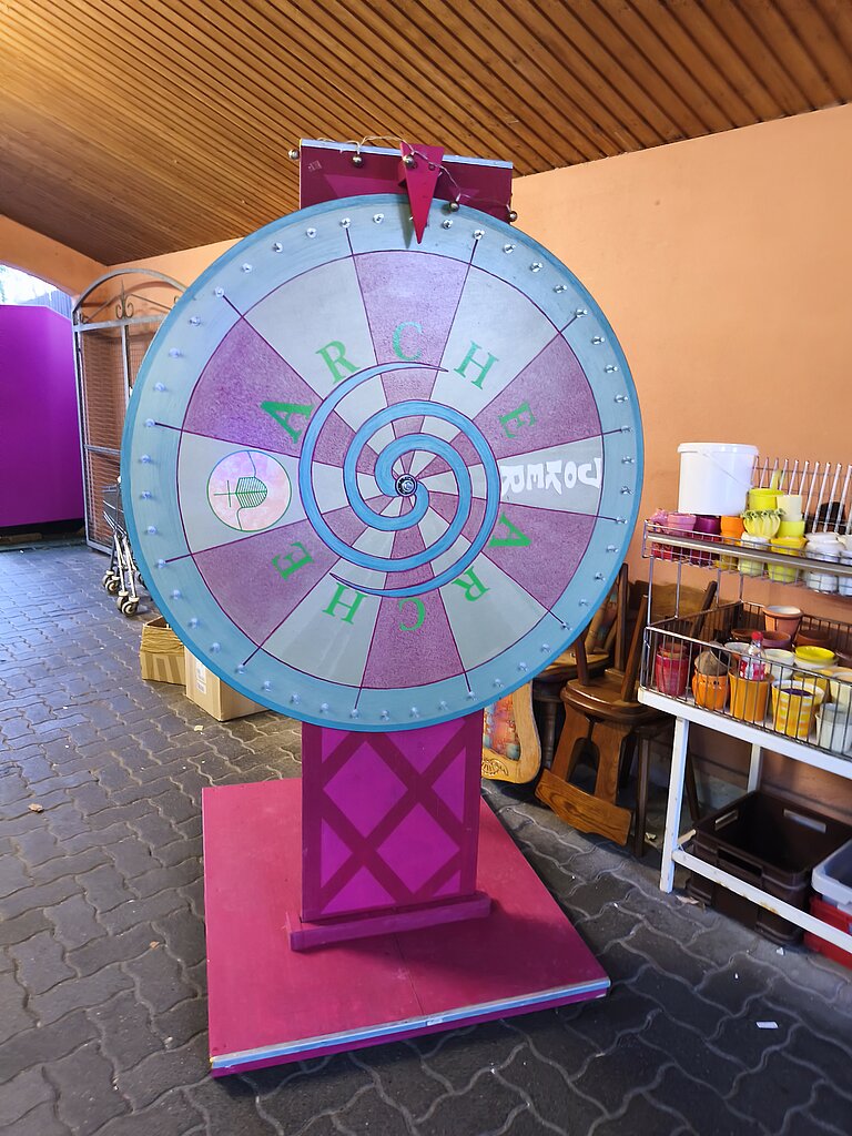 Auch das Sozialkaufhaus war Teil des Weihnachtsspazierweges und wurde von vielen Stadtteilbewohnerinnen und -bewohnern besucht. Dort wurden unter anderem Vogelhäuschen angeboten, die von den Bewohnerinnen und Bewohnern des Wohnpflegeheims Margeritenweg der Arche mit viel Engagement gefertigt worden waren. Das Glücksrad erfreute sich ebenfalls großer Beliebtheit.