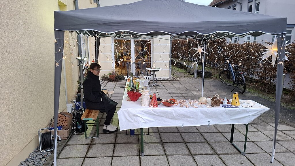 Vor dem Café Drei Eichen präsentierte sich die inklusive Töpfergruppe mit einem liebevoll gestalteten Stand. Angeboten wurden weihnachtliche Töpferwaren sowie handgefertigter Schmuck. Im Café selbst erwartete die Gäste eine große Auswahl an selbstgemachter Marmelade, festlicher Weihnachtsdekoration, Kirschkernkissen sowie Punsch, Glühwein und Kuchen.