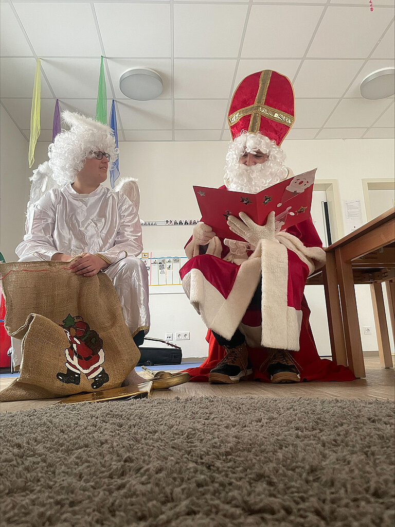 Mit wertschätzenden Worten und kleinen Nikolausgeschenken bereiteten der Nikolaus und sein Engel nicht nur den Kindern, sondern auch unseren Pädagoginnen und Pädagogen eine große Freude.