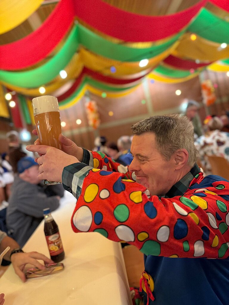 Wir verkleideten uns als Clown mit cooler Sonnenbrille, Cowboy, Hexe oder im Siebzigerjahre-Look. Die Veranstaltung bot eine bunte Mischung aus Show-Tanzeinlagen, Büttenreden, Auftritten einer orientalischen Tanzgruppe und vielen Gardetänzerinnen sowie Funkenmariechen.