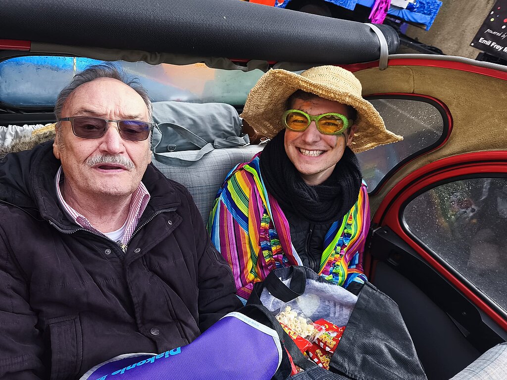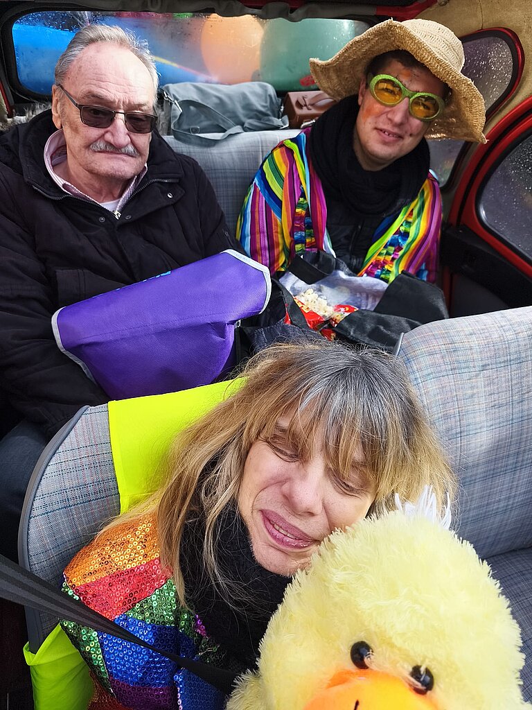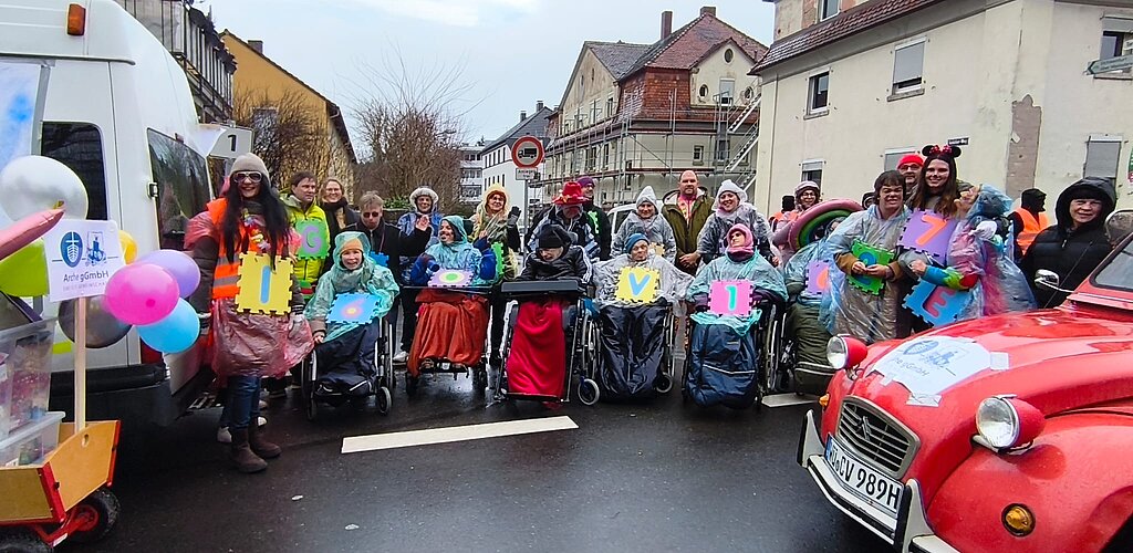 Mit einer großen Anzahl von BewohnernInnen der Arche gGmbH aus den beiden Wohnpflegeheimen Berner Straße und Margeritenweg sowie dem Ambulant Unterstützten Wohnen (AUW) nahm die Arche gGmbH am 17.2.2026 wieder mit einer Läufergruppe, zwei Bussen und der „roten Ente“ von Rolf Müßig, persönlich gefahren, beim diesjährigen Faschingsumzug in Heidingsfeld teil.