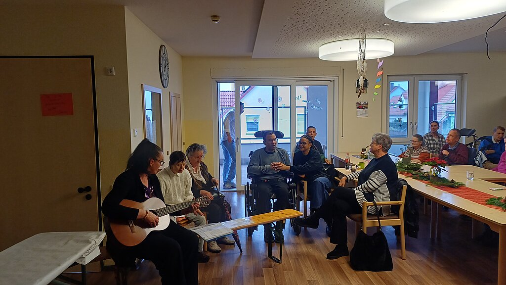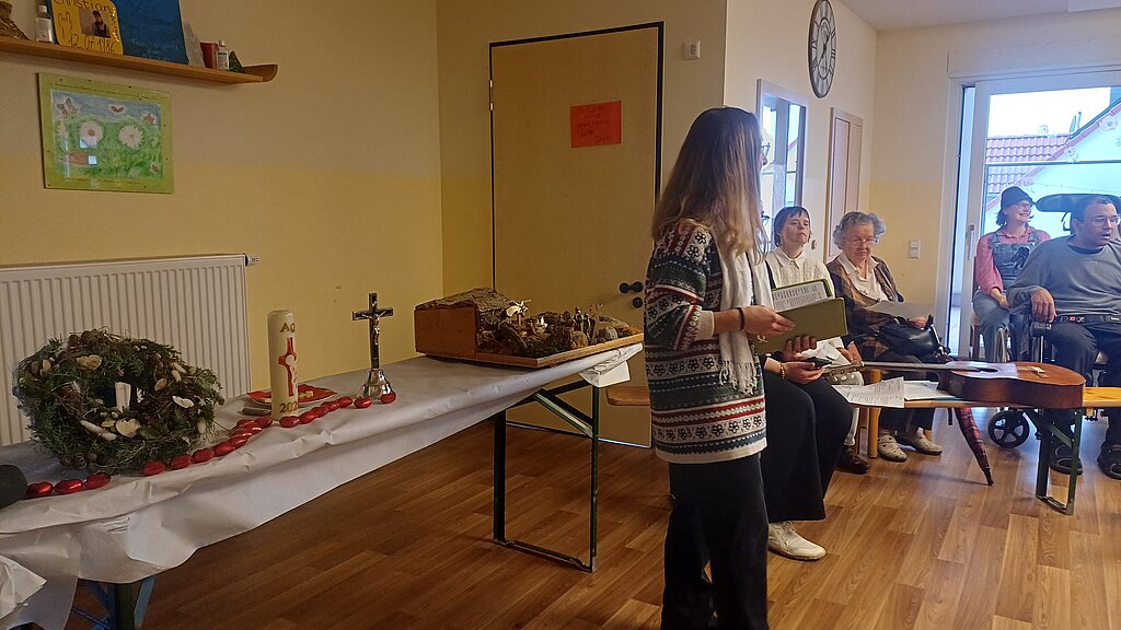 Im Anschluss an die Andacht wurde gemeinsam gesungen: Die Bewohner:innen stimmten voller Freude bekannte Weihnachtslieder an, die durch eine musikalische Begleitung besonders stimmungsvoll untermalt wurden. Das gemeinsame Singen sorgte für viele lächelnde Gesichter und eine rundum besinnliche Weihnachtsstimmung.